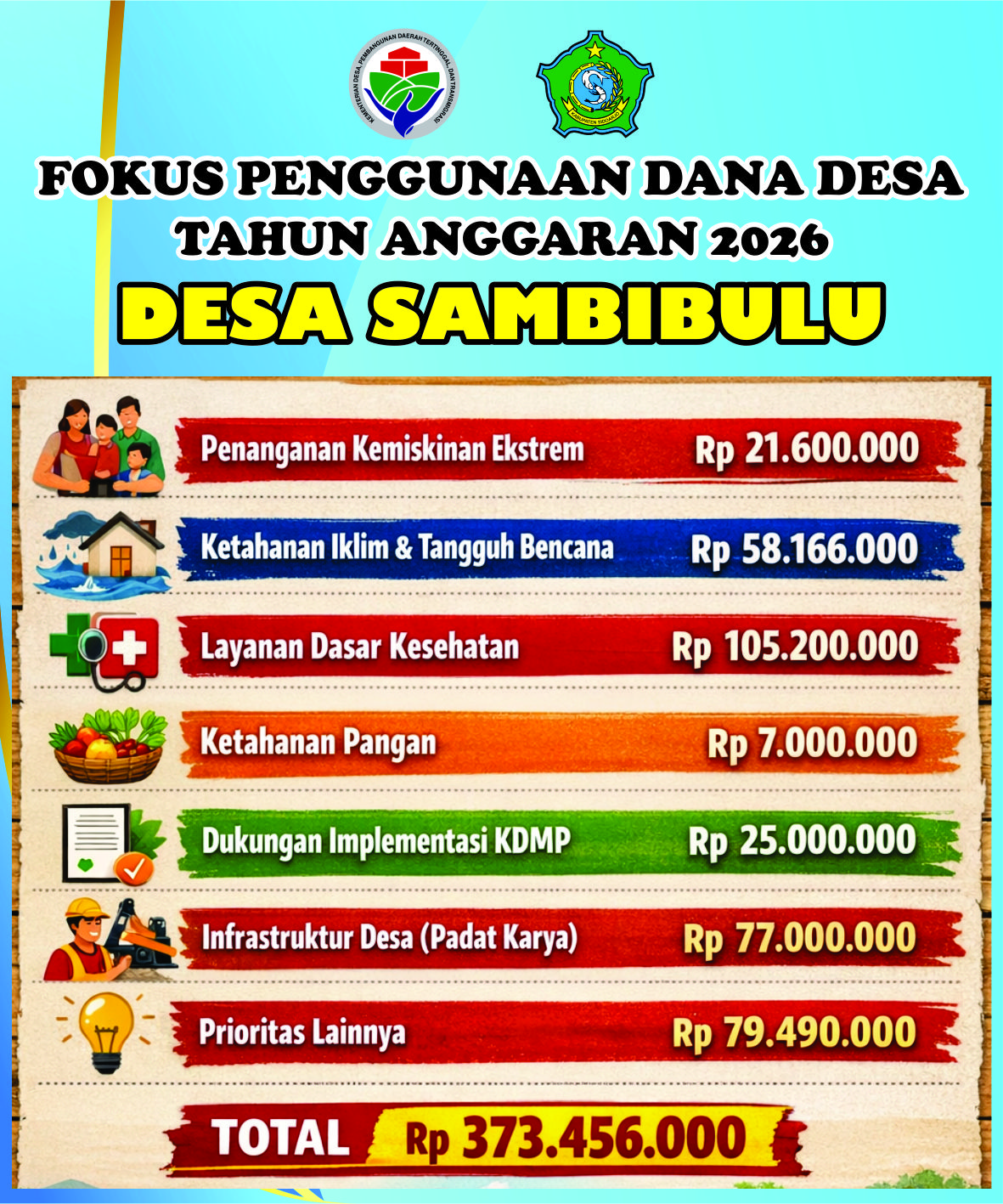 Berikut ini infografis Fokus Penggunaan DD Desa Sambibulu Tahun 2026: